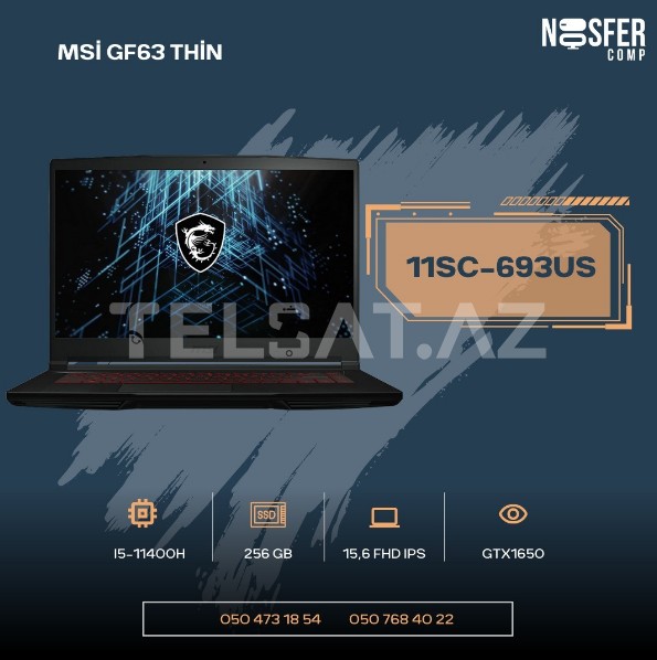 💻 MSİ GF63 Thin 🛠 i5-11400H 📀 RAM: 18 GB 🎥 GPU: GTX1650 💾 SSD: 256 GB 📺 15.6 FHD İPS