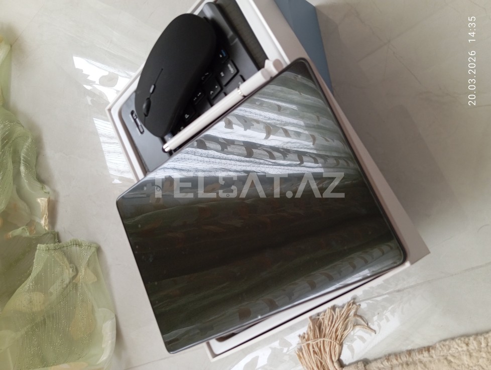 Qutuda klaviatura, mouse, qələm və nausnik var, hər şey daxildir